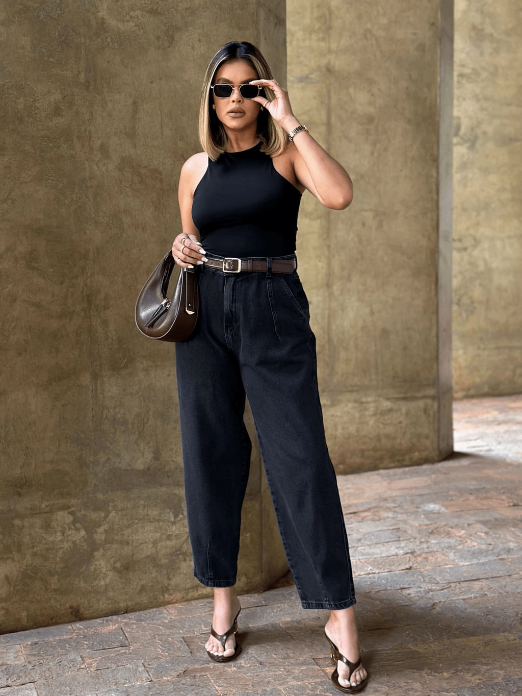Com modelagem mom fit de cintura alta, a calça realça a silhueta sem perder a liberdade de movimentos. Seja para o trabalho, encontros casuais ou momentos de lazer, ela garante praticidade e estilo em uma única peça.