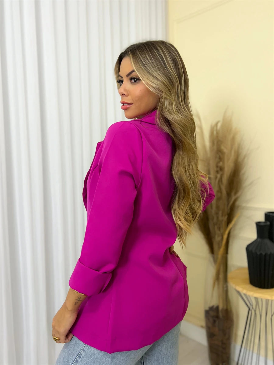 Seja no escritório, em eventos sociais ou em encontros casuais, este blazer é o equilíbrio perfeito entre formalidade e descontração. O design minimalista e a cor preta versátil permitem combinações infinitas com saias, vestidos ou calças, tornando-se indispensável no guarda-roupa feminino.