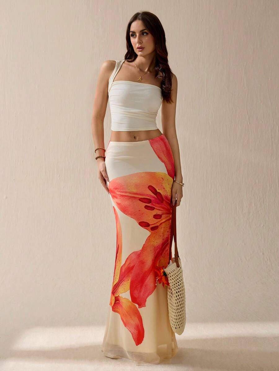 Sinta a leveza e a elegância em cada passo com a saia longa de tule com estampa floral. O caimento tipo sereia realça suas curvas de forma delicada, enquanto a cintura baixa proporciona um toque moderno ao visual. Ideal para ocasiões à beira-mar ou momentos especiais de férias, essa peça transforma sua presença em algo memorável, transmitindo sofisticação e liberdade.