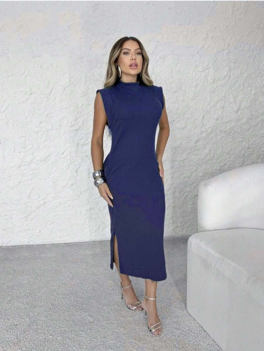 O corte slim fit aliado ao decote de colarinho baixo garante um caimento impecável. Sem forro, mas com elasticidade alta, o vestido acompanha seus movimentos e proporciona liberdade sem comprometer o estilo. A fenda na bainha adiciona um toque de movimento e leveza, enquanto o bolso lateral oferece funcionalidade discreta para o dia ou noite.