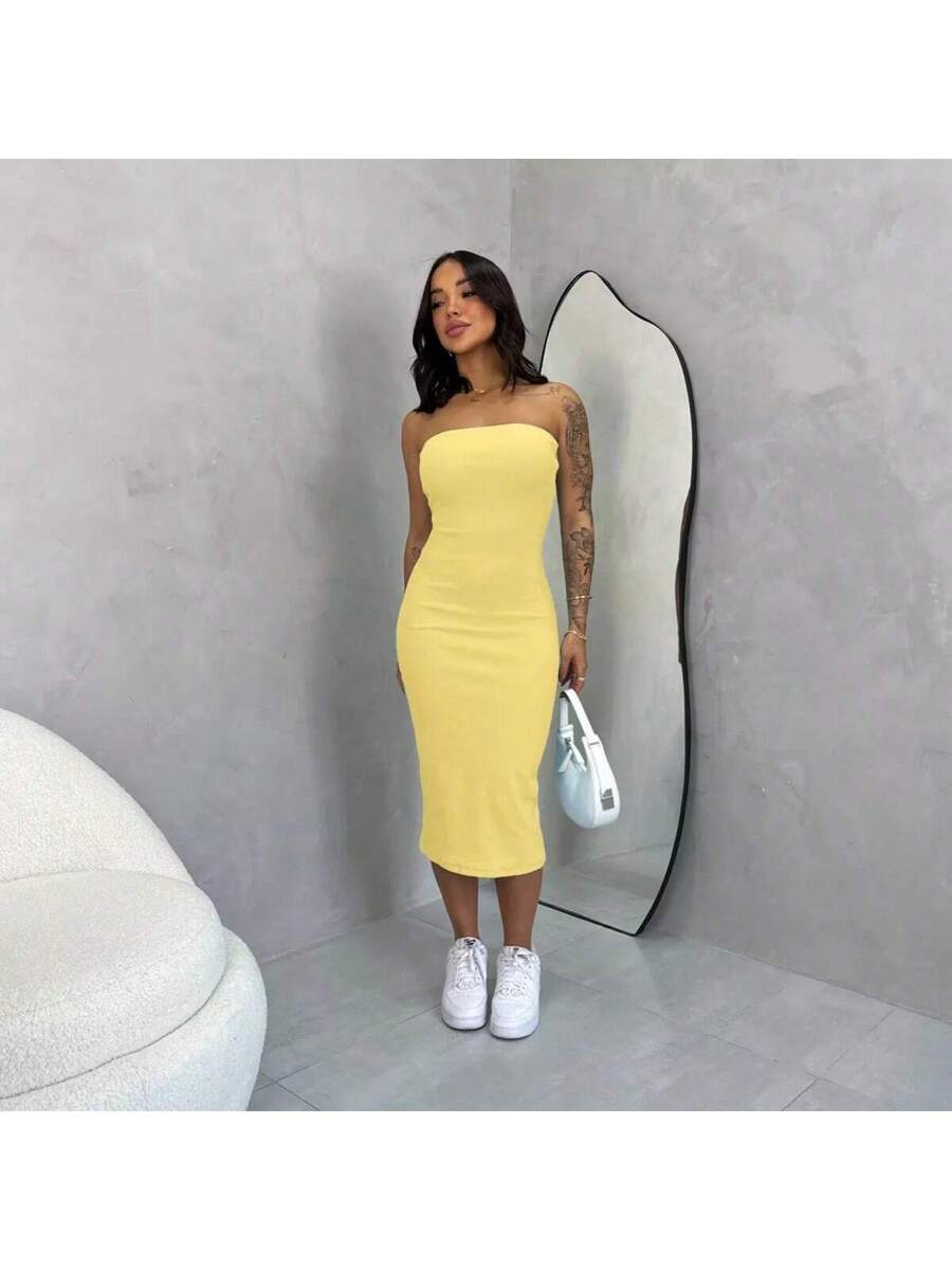 O vestido que une sofisticação e conforto em uma única peça. Confeccionado em tecido premium, o vestido midi tomara que caia canelado proporciona um caimento impecável que valoriza cada detalhe da silhueta. Sua textura diferenciada, resistente a amassados e desbotamento, garante um visual elegante em qualquer ocasião, fazendo você se sentir confiante e preparada para brilhar.